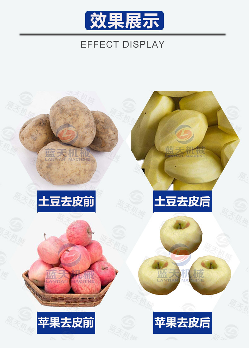 山药去皮机除可以去山药外,还可以去除苹果、芒果、土豆、红薯等、新型山药去皮机去的皮厚薄适中,不会造成浪费。